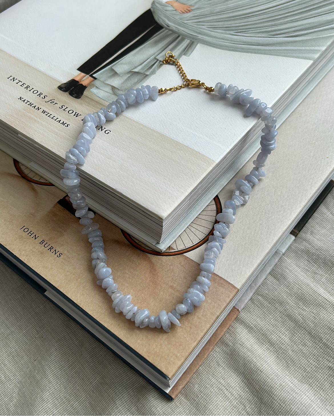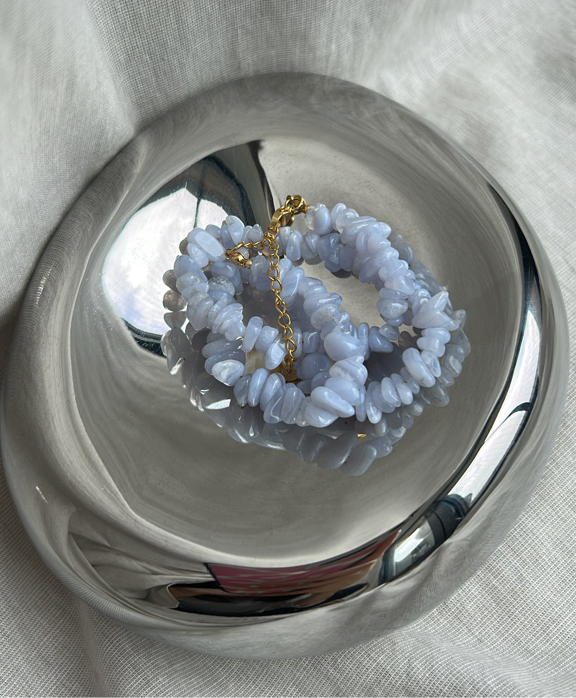 Der Halbedelstein blauer Achat hilft gegen Stress, Nervosität und innere Unruhe.